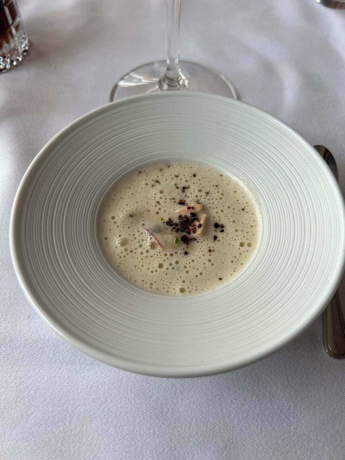 Denna krämiga palsternacksoppa är ett underbart exempel på hur enkla ingredienser kan förvandlas till något extra speciellt. Palsternackan ger en naturlig sötma och fyllighet till soppan, vilket gör den till en perfekt bas för mer komplexa smaker. Den rökta laxen tillför en härlig sälta och umami, medan den svarta romen bidrar med både en lyxig känsla och en subtil havssmak som kompletterar rätten perfekt.